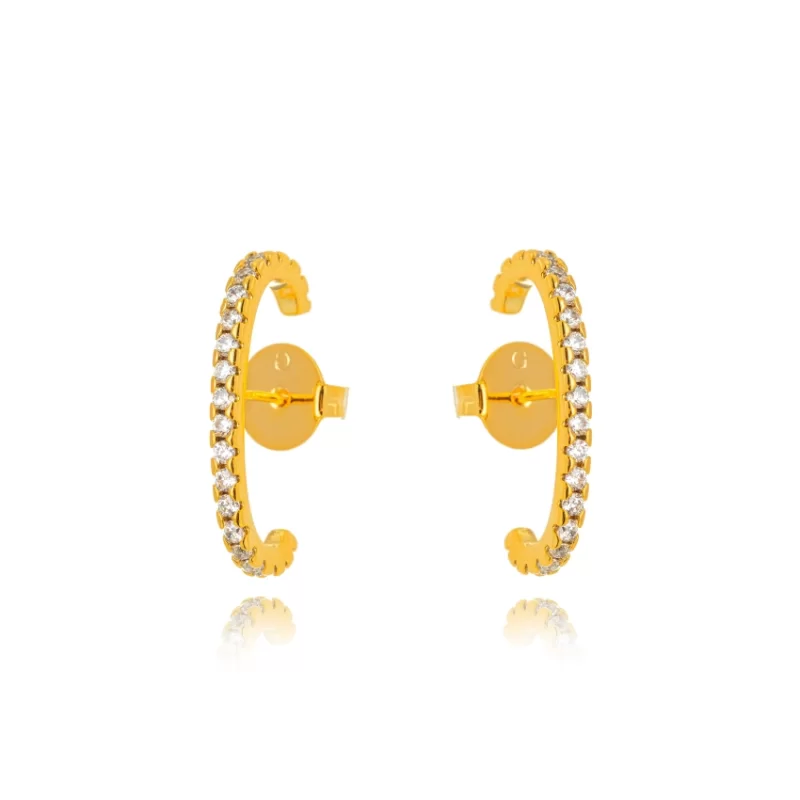 Brinco Ear Hook Micro Zircônia Confeccionado em Banho de Ouro Amarelo 18k.