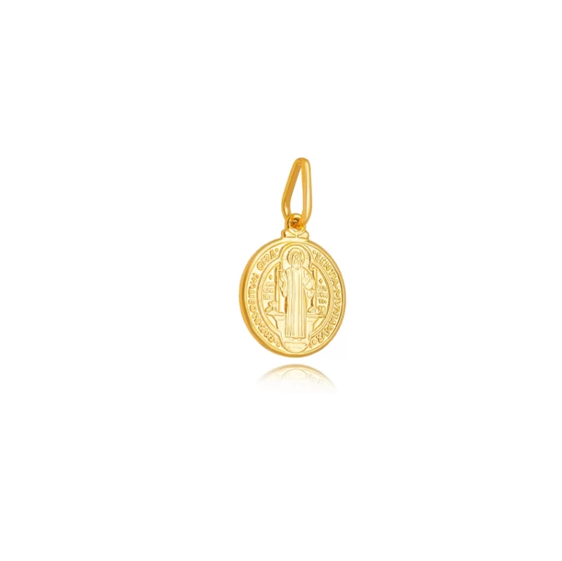 Pingente Masculino São Bento Liso Confeccionado em Banho de Ouro Amarelo 18K.