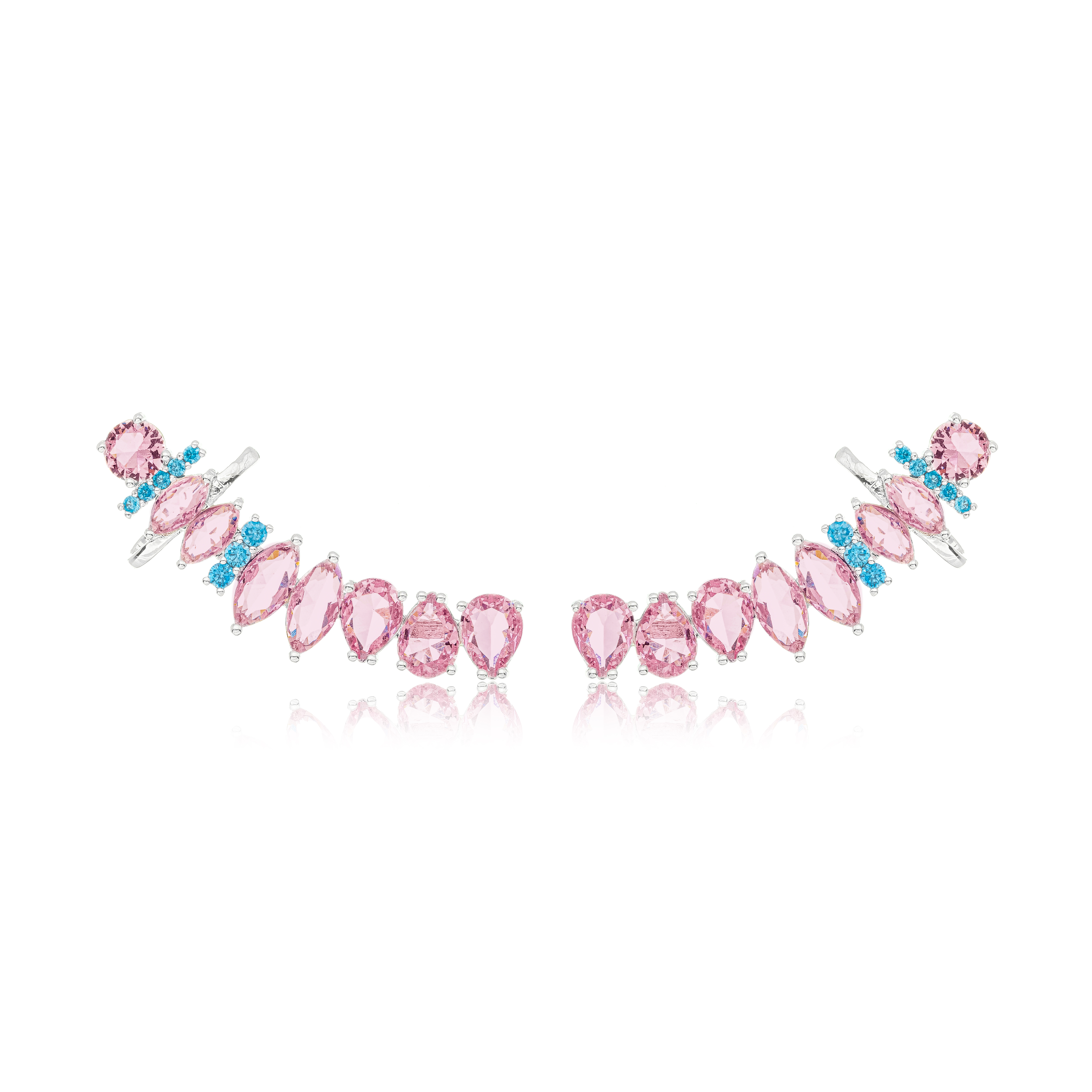 Brinco Ear Cuff Rosa com Cristal Turquesa Confeccionado em banho de Ouro Amarelo 18K.