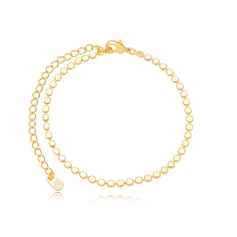 Pulseira Chapas Redondas Lisas Confeccionado em Banho de Ouro Amarelo de 18K.