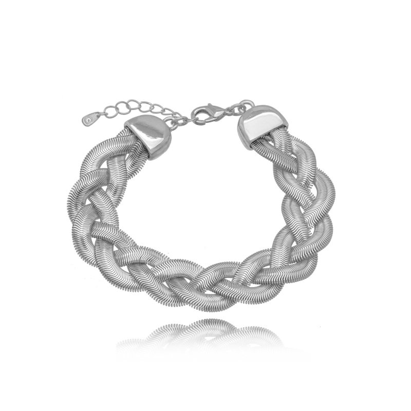 Pulseira Malha Trançada Confeccionada em Banho de Ródio Branco.